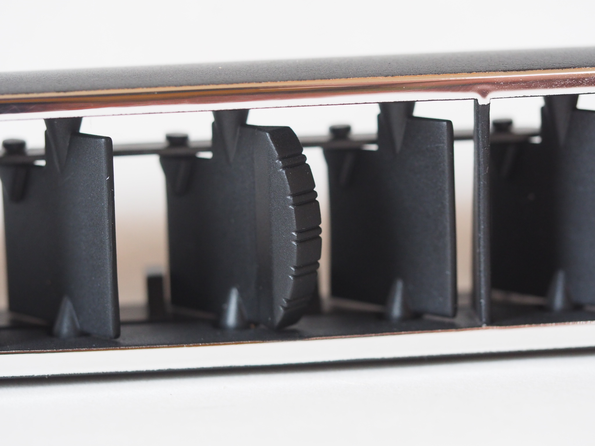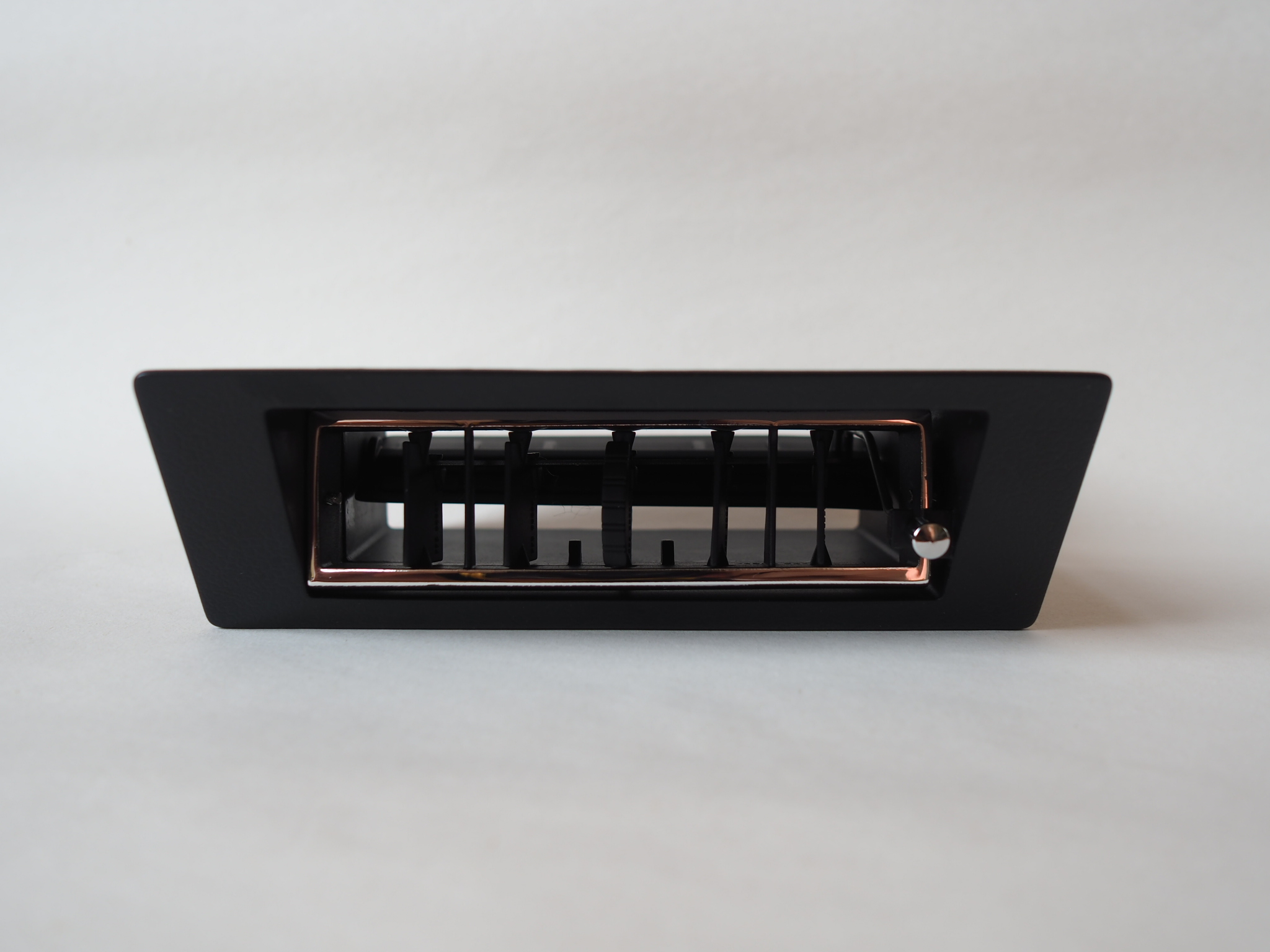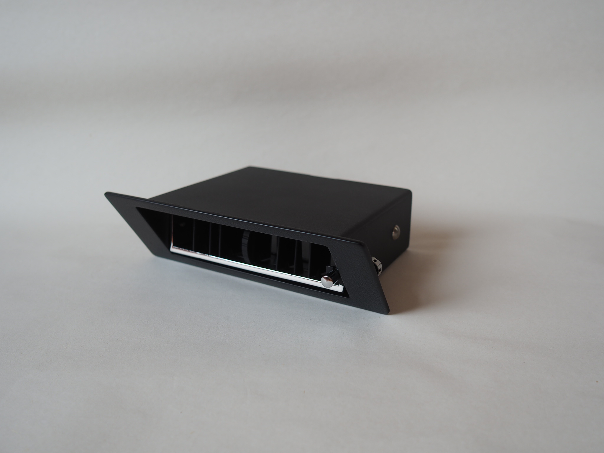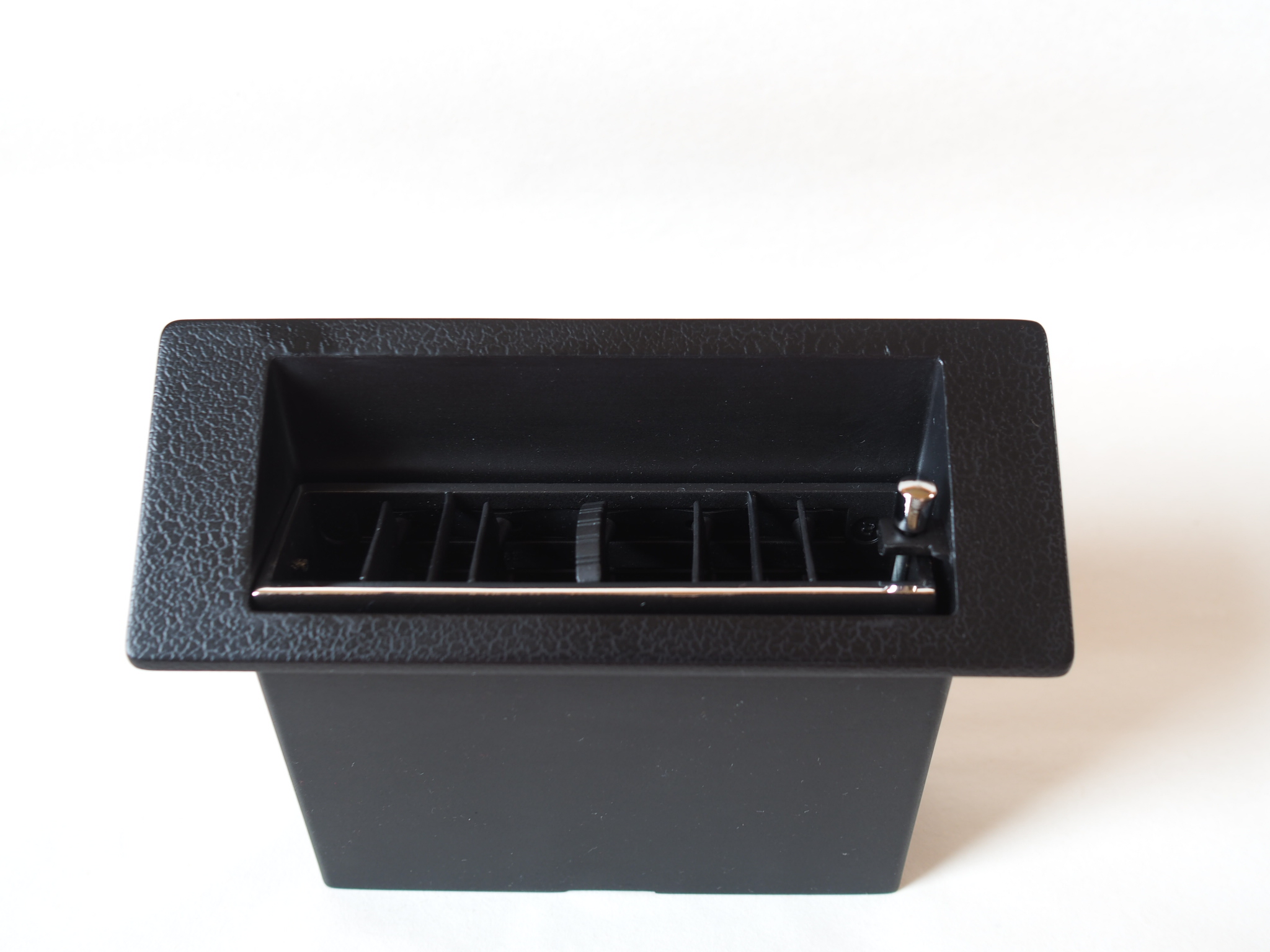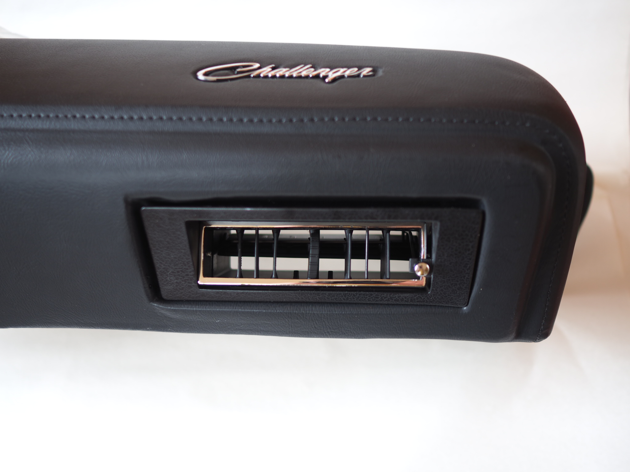 This vent is an accurate replica of the 1970 Plymouth Barracuda/’Cuda and Dodge Challenger AC vents. This reproduction part not only features the right material properties of PP and ABS which were used on the original parts but it also has the right finishes. The edge of the louver housing is vacuum chrome plated just like the original one.